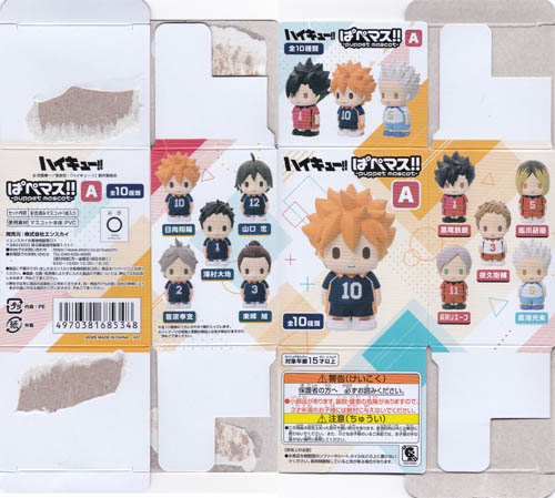 烏野高校1年生のミドルブロッカー。ジャンプフローターサーブの使い手で試合ではピンチサーバーで起用される。月島(Bセット収録)とは幼馴染みで、彼を「ツッキー」と呼び、普段から一緒に行動している。 |