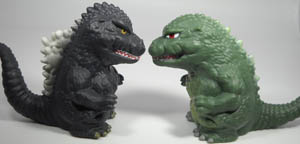 前回から2年ぶりにゴジラのソフビパペットマスコット第三弾が発売されました。ゴジラがダブっているようにも見えますが、登場作品が異なっていてデザインも細かく変わっています。ゲスト怪獣たちも造形が素晴らしいですね。ラインアップのうち、ガイガンは2004年のクレジットがついていますので、「ゴジラ FINAL WARS」に登場した個体ですね。体色がメタリックでとても美しいです。一方、キングシーサーも「ゴジラ FINAL WARS」に登場してはいますが、指が三本なので74年の「ゴジラ対メカゴジラ」に登場した個体だと思います。
